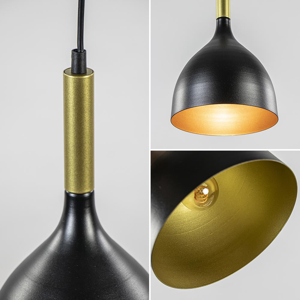 Deze leuke hanglamp met luxe uitstraling is geschikt voor meerdere ruimtes. Door het kleine formaat is deze lamp ideaal voor in de keuken, boven een kookeiland en zelfs in de hal. De mat zwarte hanglamp met de gouden accenten heeft een warme en luxe uitstraling. Mocht de lamp te lang zijn dan is het snoer gemakkelijk in te nemen.