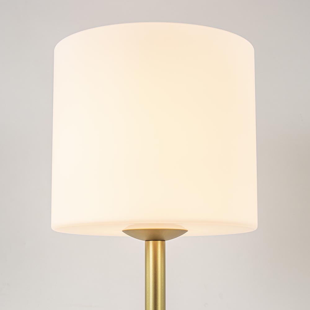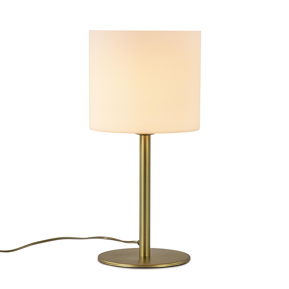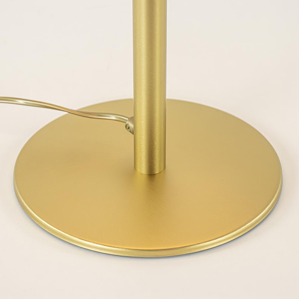 Een prachtige tafellamp voor een hotel chic of luxe interieur. De tafellamp heeft een metalen armatuur dat is uitgevoerd in het mat goud. Dit is gecombineerd met een mat witte glazen kap met een doorsnede van 25 cm. Deze combinatie geeft de lamp een stijlvolle look. De mat gouden tafellamp heeft een goud snoer met een lengte van 165 cm en is op 50 cm van de voet voorzien van een schakelaar. De stijlvolle tafellamp goud met wit glas wordt geleverd exclusief lichtbron (E27)