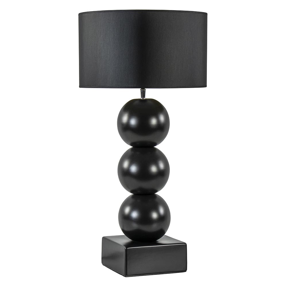 Een elegante toevoeging voor een strak klassiek of hotel chic interieur. De lampvoet is volledig gemaakt van keramiek en is uitgevoerd in het mat zwart. Dit geeft de tafellamp een luxe uitstraling die compleet wordt gemaakt door de ronde kap in het zwart/goud. Deze wordt ondersteund door een fitting met kogelgewricht zodat u de kap gemakkelijk recht kunt zetten. De tafellamp met bollen is voorzien van een zwart snoer met een lengte van 140 cm. De schakelaar bevindt zich op 20 cm van de voet. De chique tafellamp met kap wordt exclusief lichtbron geleverd.