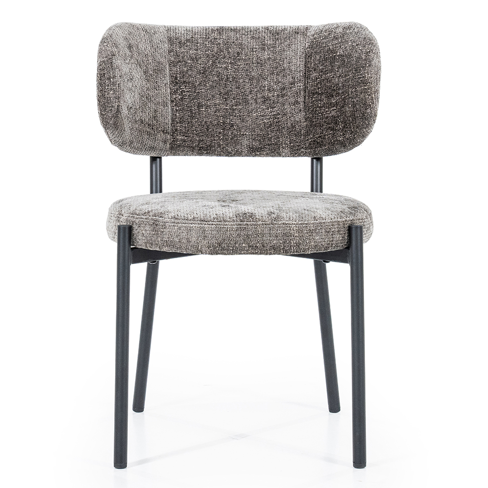 De “Oasis” is een sfeervolle eetkamer- of bureaustoel met een royaal rond zitvlak en licht gebogen rugleuning. De warme bruine stof en de slanke, zwarte stalen poten zorgen voor een tijdloze look die in vrijwel elke ruimte tot zijn recht komt.