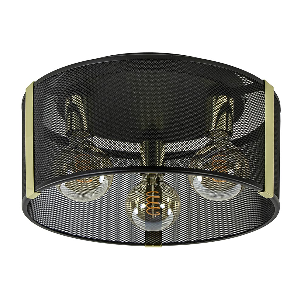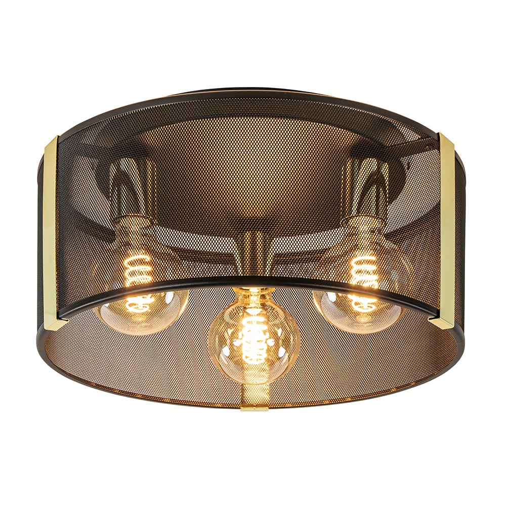 – afm: Ø40×21,5 cm – bevestiging: Ø30×3 cm – metaal – mat zwart/goud – exclusief lichtbron (3x E27) – dimbaar (exclusief)