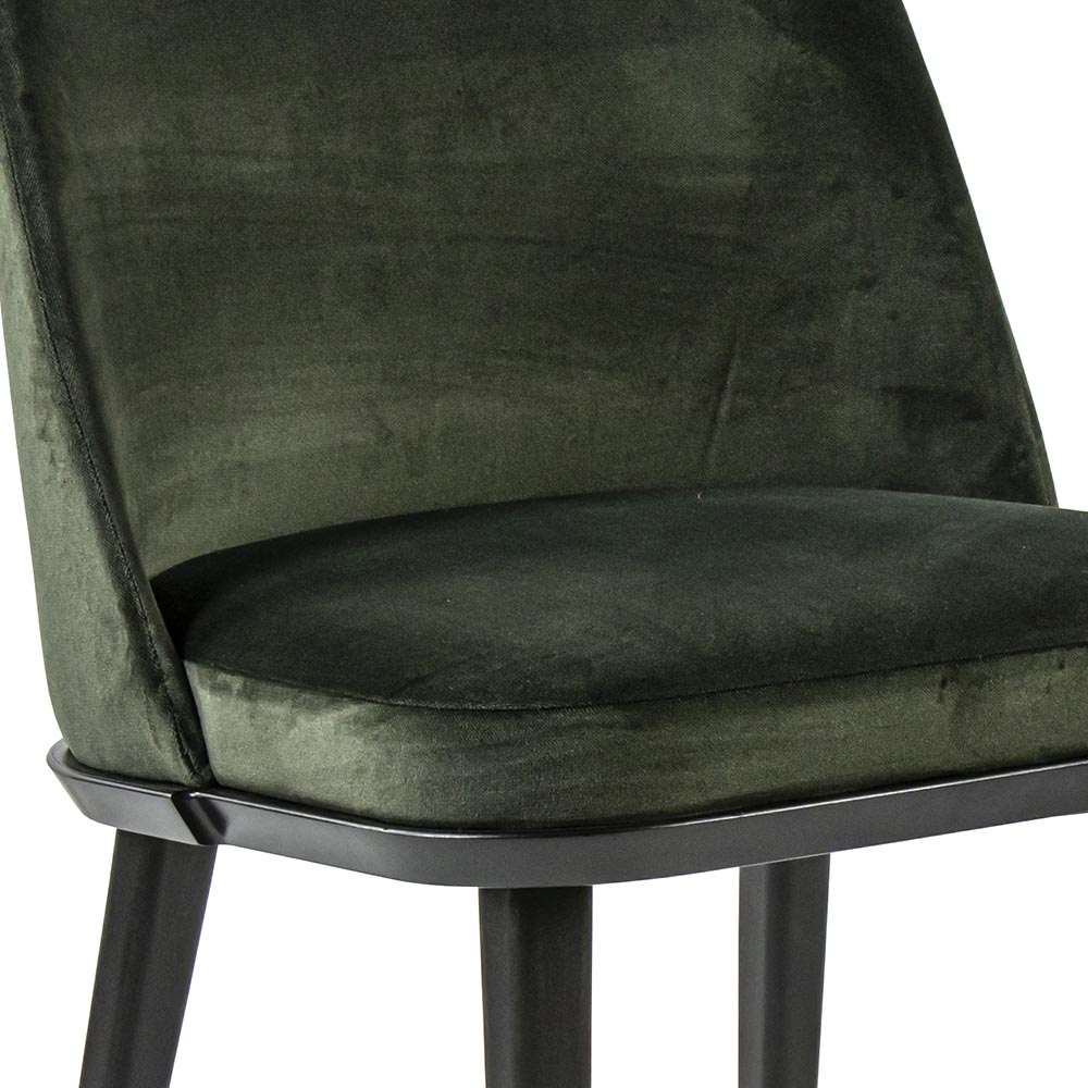 Comfortabel met een stijlvolle look. Deze eetkamerstoel heeft een stoffen zitting en rugleuning die zijn uitgevoerd in het velvet groen. Het groen heeft een diepe rijke kleur wat de stoel die luxe uitstraling geeft. Het groen is gecombineerd met een beuken houten poot in het zwart.