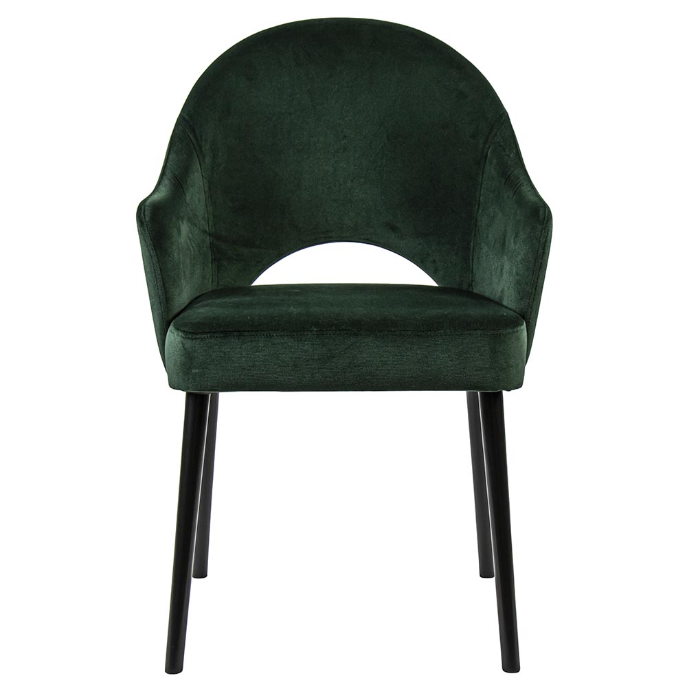 Mooi te combineren in een trendy, modern of klassiek interieur. Deze eetkamerstoel heeft een stoffen zitting die is uitgevoerd in het verlours groen. Het donker groen heeft een chique uitstraling wat de stoel geschikt maakt voor diverse woonstijlen. De eetkamerstoel is voorzien van mat zwarte houten poten.