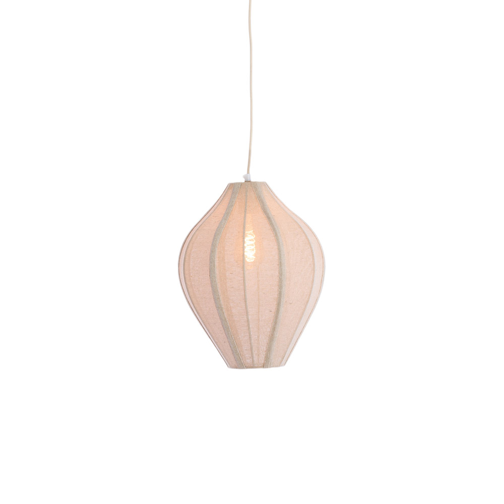 • Zachte textielen kap met organische, lampionvorm • Geeft warm en diffuus sfeervol licht • Verkrijgbaar in drie maten • Perfect voor decoratieve lichtbronnen • Ideaal boven eettafel, zithoek of in de slaapkamer