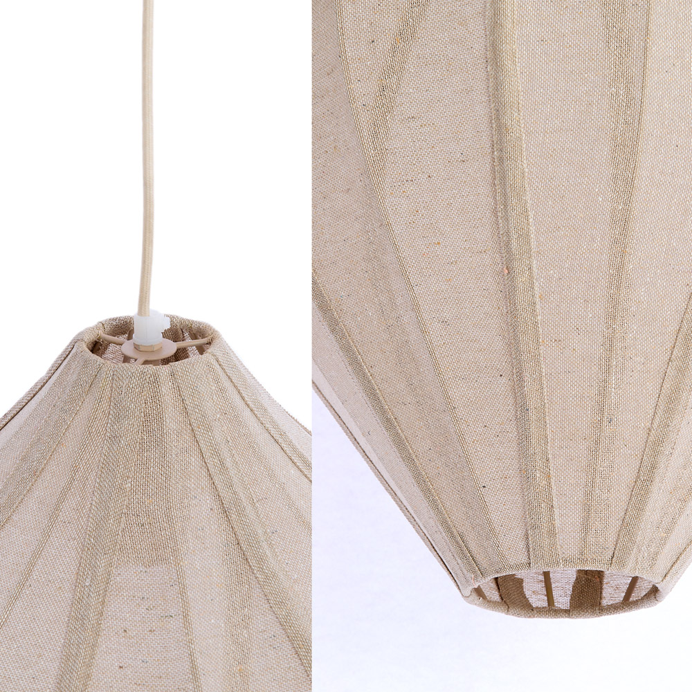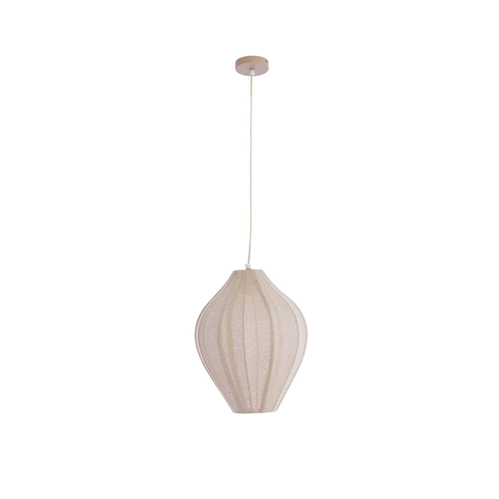 Specificaties: • Kleur: Naturel • Vorm: Rond / lampionvorm • Materiaal: Textiel • Aantal lichtpunten: 1 • Fitting: E27 • Max. wattage: 40 watt • Lichtbron: Exclusief • Dimbaar: Ja, via externe dimmer en geschikte lichtbron (niet inbegrepen) • Afmetingen maat S: Totale lamp Ø31 × H38 cm • Afmetingen maat M: Totale lamp Ø36 × H44 cm • Afmetingen maat L: Totale lamp Ø47 × H55 cm