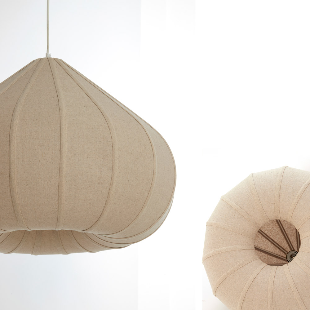Door het gebruik van textiel en de rustige naturel kleur past deze hanglamp moeiteloos in uiteenlopende interieurstijlen, van modern en Scandinavisch tot warm en natuurlijk.
