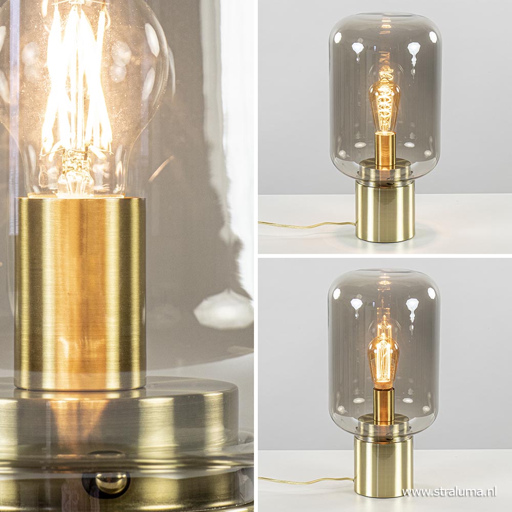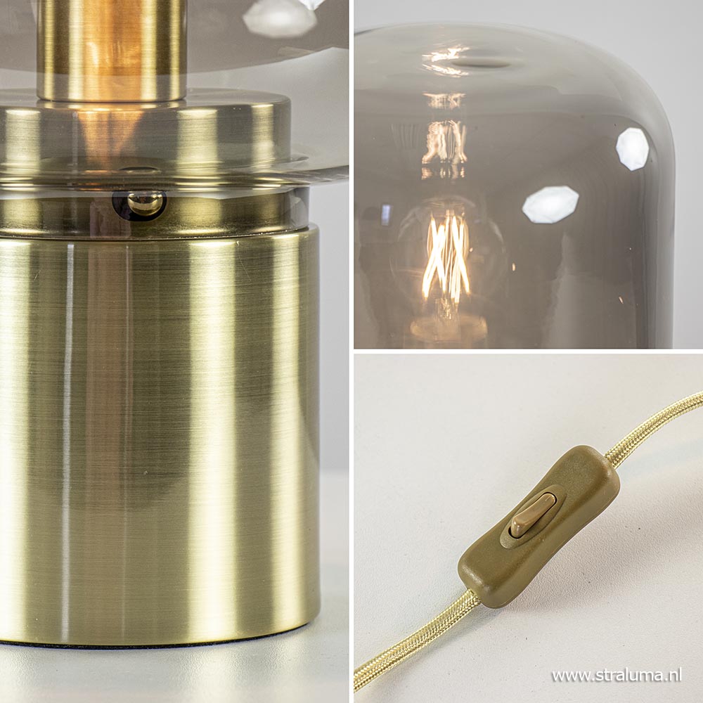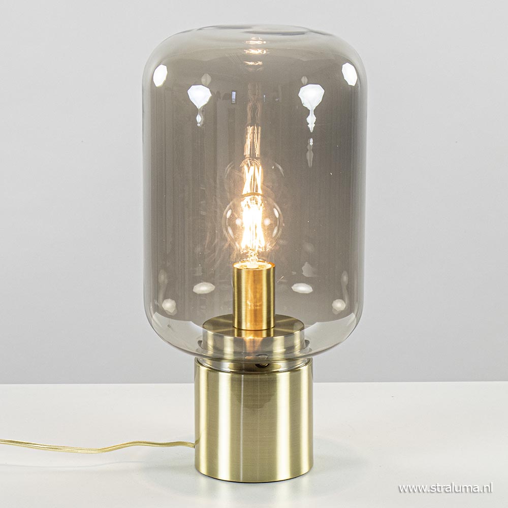 Homepagina / Lampen / Light and Living / Tafellamp Arturan messing + smoke glas