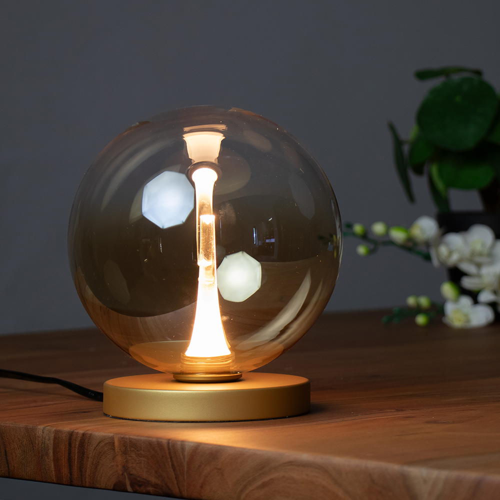 Zoek je een sfeermaker die compact, krachtig en tegelijk eenvoudig in gebruik is? Dan is deze tafellamp ideaal voor jouw! De heldere glazen bol met geïntegreerde ledlamp rust op een elegante, slanke voet. Zet de tafellamp eenvoudig aan of uit via de schakelaar in het snoer en geniet meteen van het warm wit licht. De taffellamp is erg mooi te combineren in een modern interieur, van de woonkamer tot de slaapkamer of als sfeermaker in de hal.