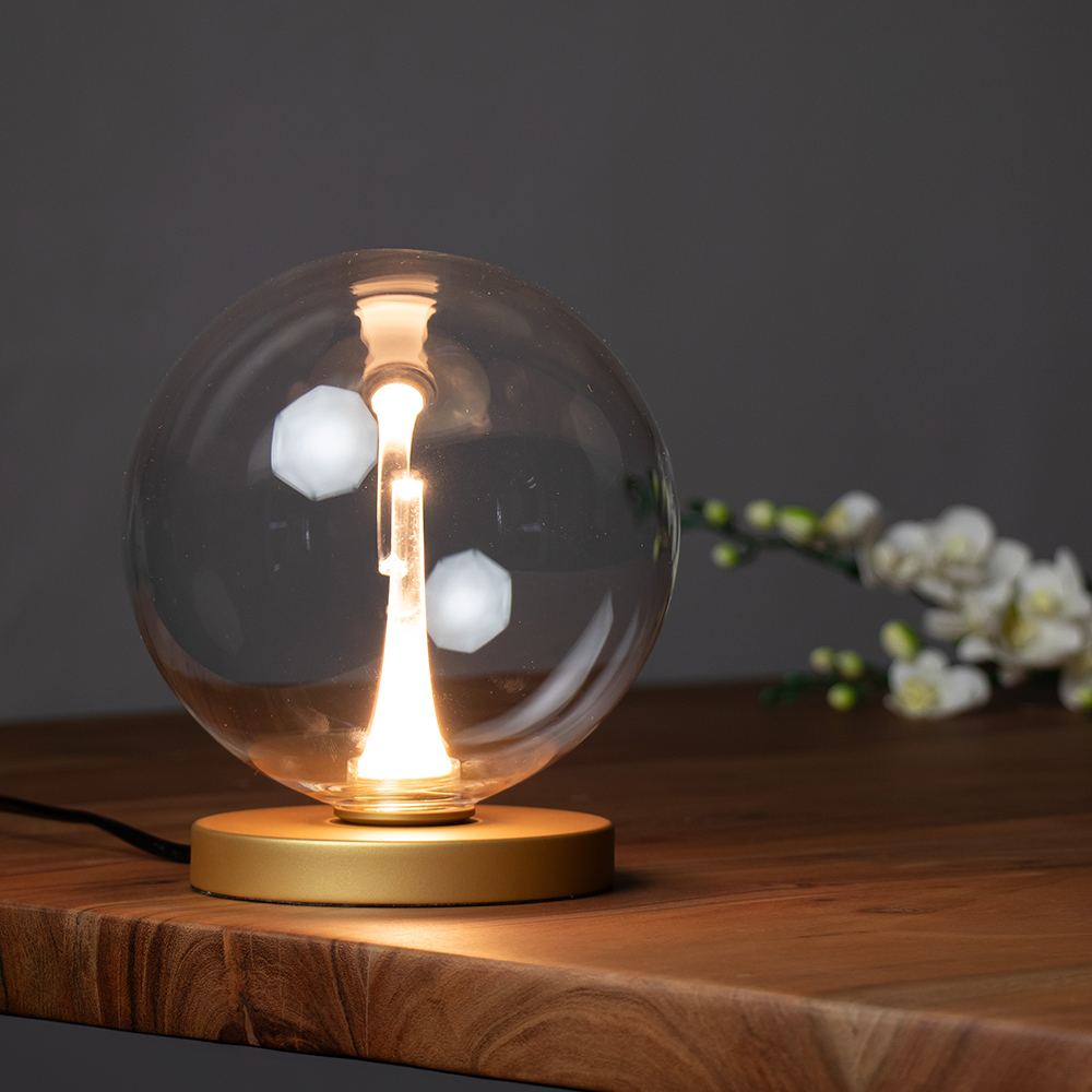 Homepagina / Lampen / Bureaulampen / Tafellamp bol – goud/transparant