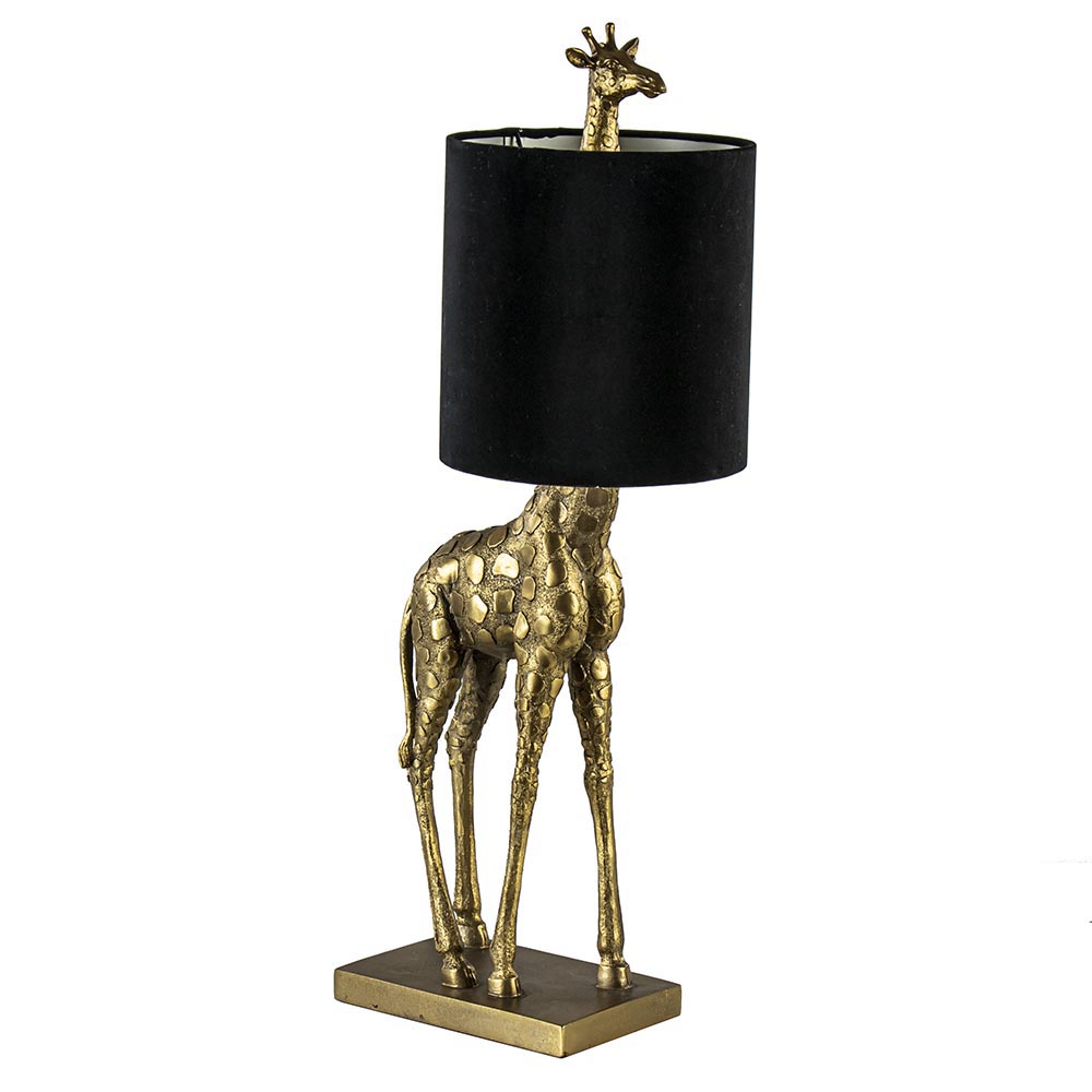 Homepagina / Lampen / Light and Living / Tafellamp Giraffe groot antiek brons met velvet zwarte kap
