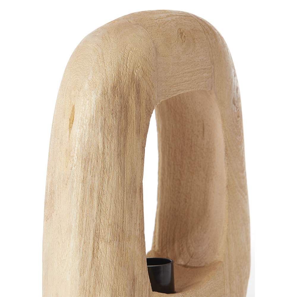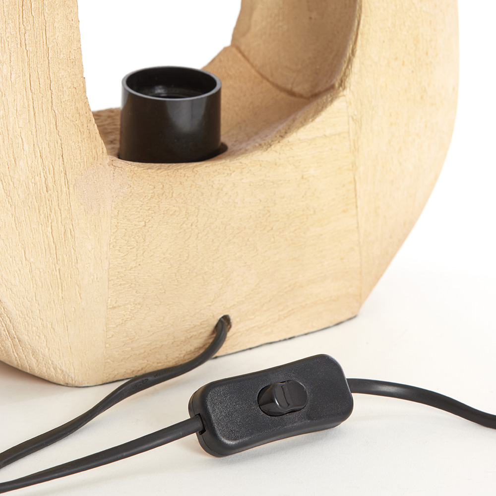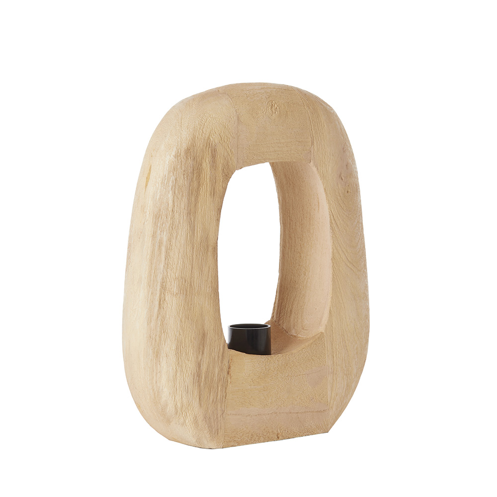Deze unieke lampvoet heeft een eigentijds ontwerp met een open, sculpturale vorm die een moderne uitstraling toevoegt aan je interieur. Gemaakt van licht hout, heeft het een organisch, natuurlijke afwerking die zowel tijdloos als verfijnd is. De opening in het midden van de voet geeft het een speelse en minimalistische uitstraling. De geïntegreerde kabel met schakelaar is praktisch en discreet geplaatst. Dit veelzijdige ontwerp past goed in een woonkamer, kantoor of slaapkamer, en creëert een sfeervolle verlichting.