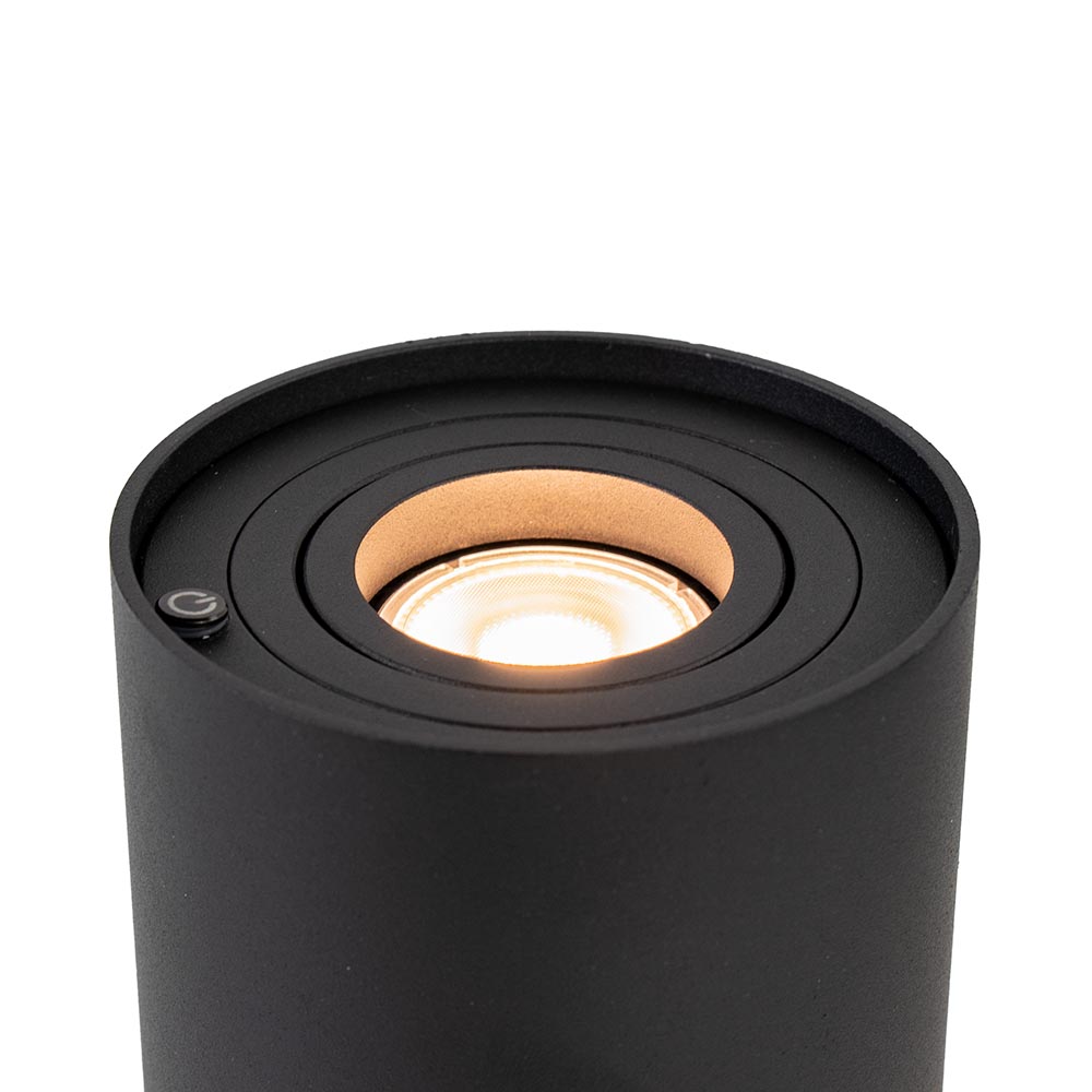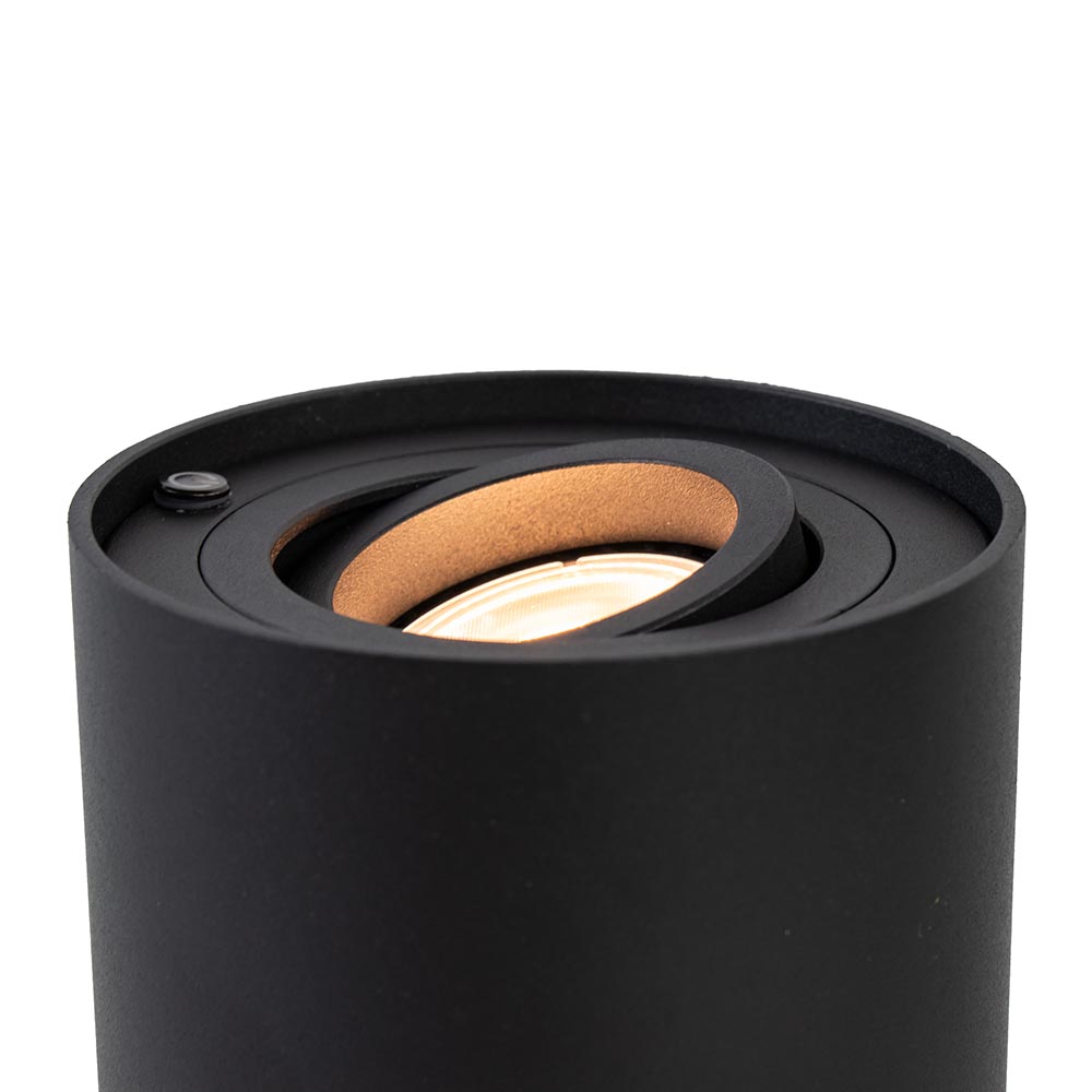 Details: – Afmetingen: Ø9,6 x12,5 cm (h) – Materiaal: Metaal – Kleur: Mat Zwart – Fitting: GU10, 1x 5W / 230V – 3 -standen dimbaar (incl.) – Kelvin: extra warm wit licht (2600K) – Lumen: 320 – Verstelbaar: Verticaal kantelen – Snoer: 150 cm – Gewicht 660g