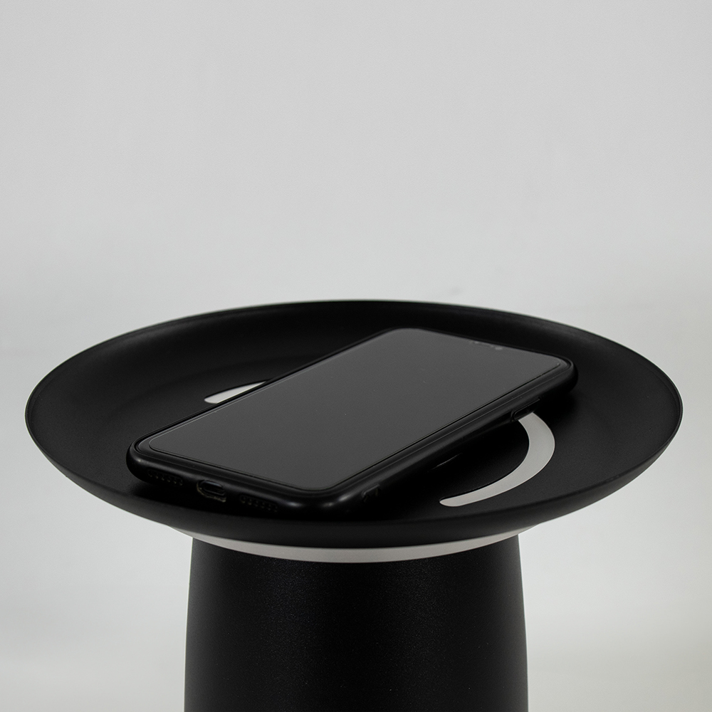 Deze functionele tafellamp met maar liefst 3 oplaadpunten is de ideale toevoeging aan uw kantoor of woonkamer. Het strake design wordt versterkt door de mat zwarte kleur, wat hem perfect maakt voor een moderne sfeer. Boven op de kap zit een wireless charging plaatje waar u de telefoon op kunt leggen om deze op te laden. Ook zitten er op de voet van de lamp een USB-A en een USB-C aansluiting. De tafellamp is voorzien van geïntegreerd LED dat dimbaar is middels de dimmer op de amatuur. Door de knop langere tijd ingedrukt te houden kan de LED lamp harder of zachter worden gezet.