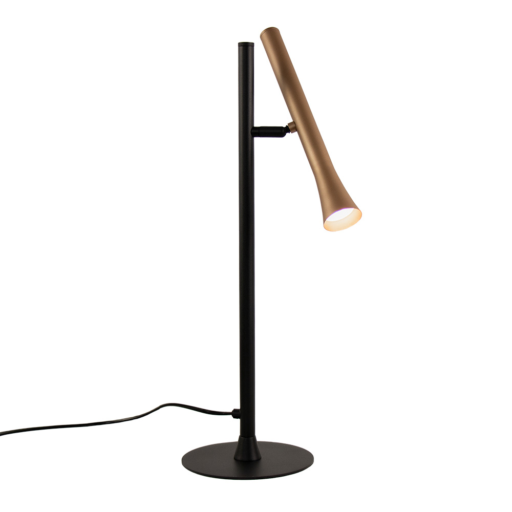 Perfect om bij te lezen, maar ook ideaal voor sfeer. Deze moderne tafellamp beschikt over een kantel- en draaibare spot in de kleur rosé goud. Ideaal om zo de juiste lichtverspreiding te creëren. Zo kunt u de lamp prima gebruiken als leeslamp of als sfeermaker. De tafellamp beschikt over geïntegreerd LED dat in lichtsterkte en temperatuur ingesteld kan worden middels de knop boven op de armatuur. Druk deze gemakkelijk 1x in om de lamp aan/uit te zetten, 2x in om 1 van de 3 kleur temperaturen te kiezen en houd deze lang ingedrukt om de lichtsterkte aan te passen.