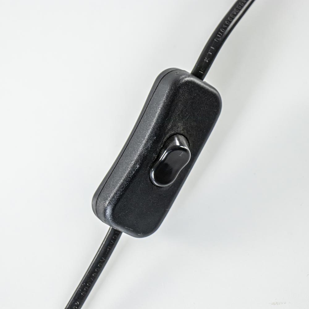 Details: – hoogte 40 cm – Ø 20 cm – snoer zwart 155 cm lang met de schakelaar op 100 cm vanaf de stekker – fitting op kogel – exclusief kap en lichtbron