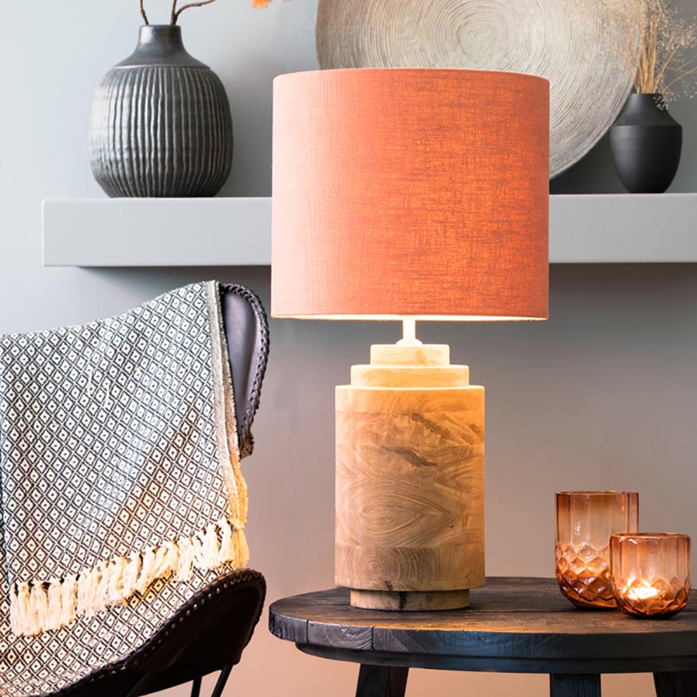 Deze tafellampvoet (excl. kap) heeft een mooie warme kleur. De houten lampvoet is voorzien van een lang snoer met schakelaar in zwart en een brons kleurige fitting. De fitting staat op een kogelscharnier waardoor de kap eenvoudig recht te zetten is. Op deze lampvoet moet een kap met een doorsnede van ongeveer 40 cm. Kom langs in onze showroom en stel zelf uw eigen kap samen! Zo past deze landelijke tafellampvoet altijd perfect in uw interieur.