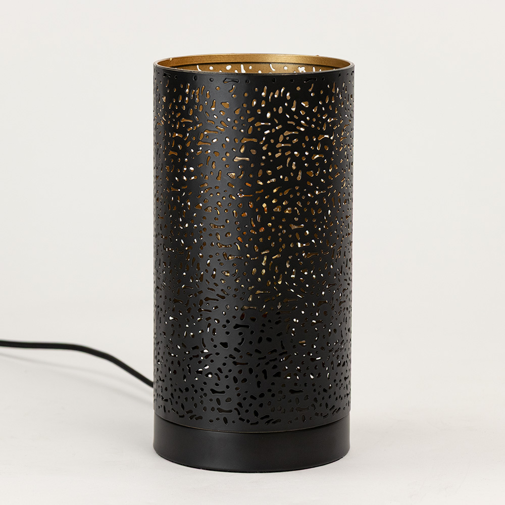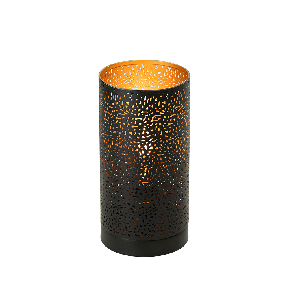 Een sfeervolle tafellamp met een luxe uitstraling! Tafellamp Zora brengt direct sfeer in je interieur dankzij het prachtige patroon en het warme gouden binnenwerk. De uitgesneden motieven in de zwarte metalen kap zorgen voor een speels lichteffect dat zich sfeervol verspreidt in de ruimte. Perfect voor een dressoir, nachtkastje of bijzettafel in een modern, industrieel of oosters interieur.