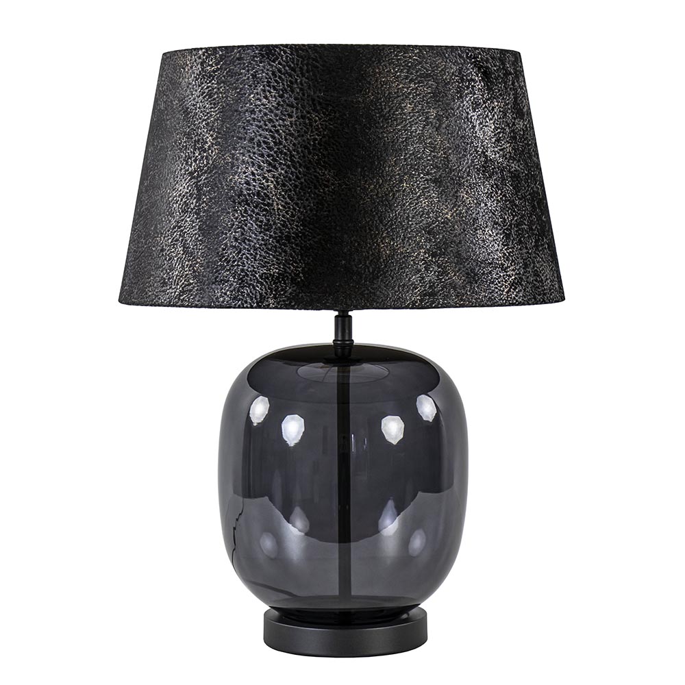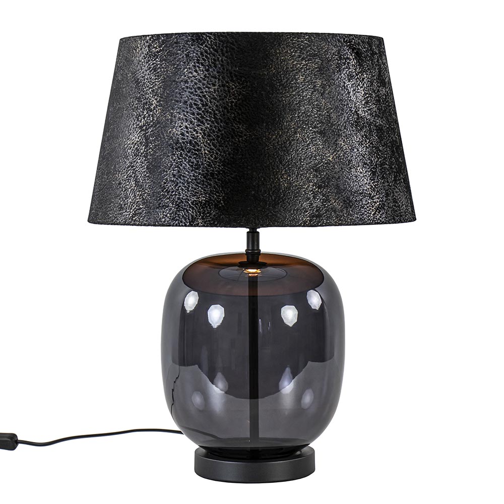Homepagina / Lampen / Schemerlampen / Tafellamp zwart glas met ronde kap 40 cm