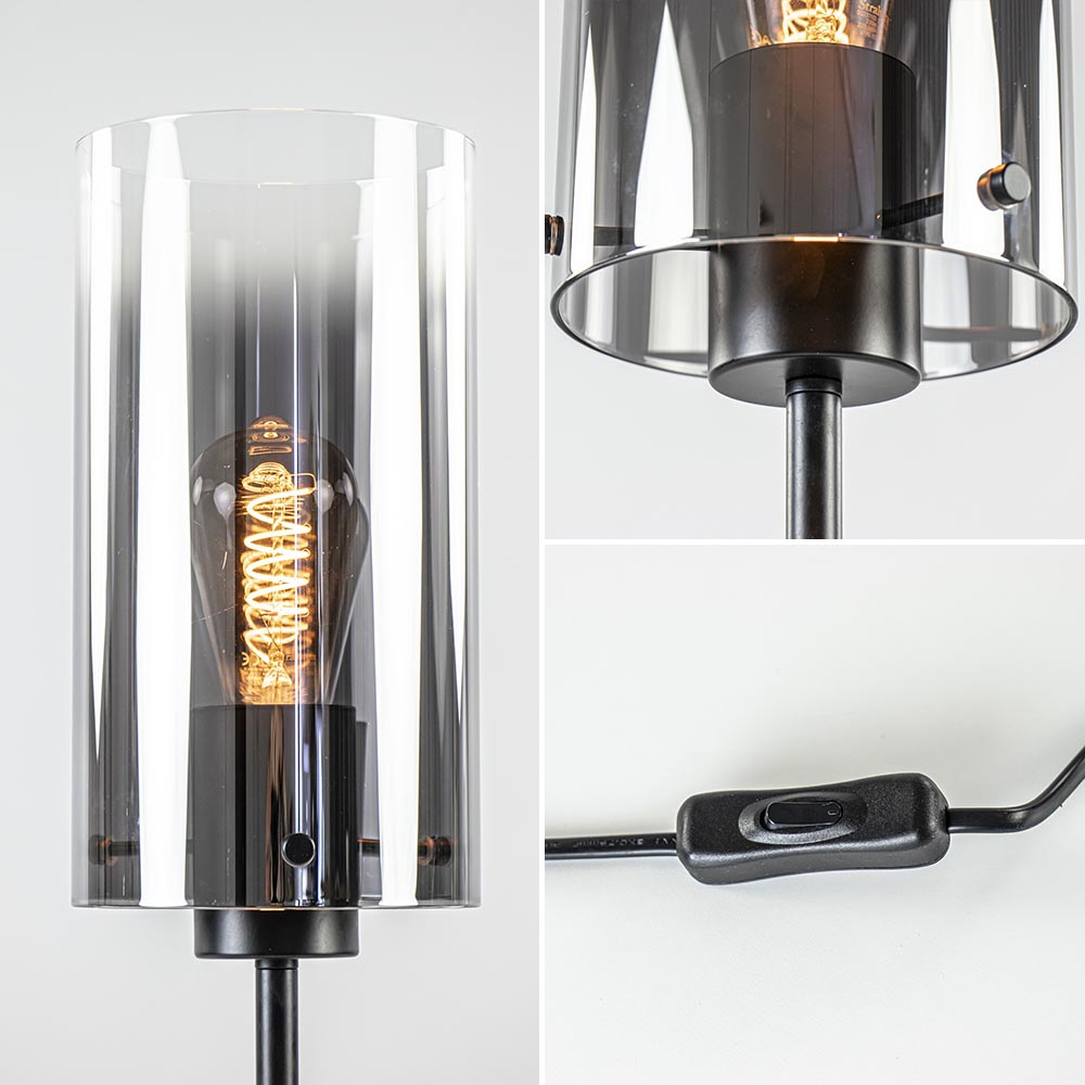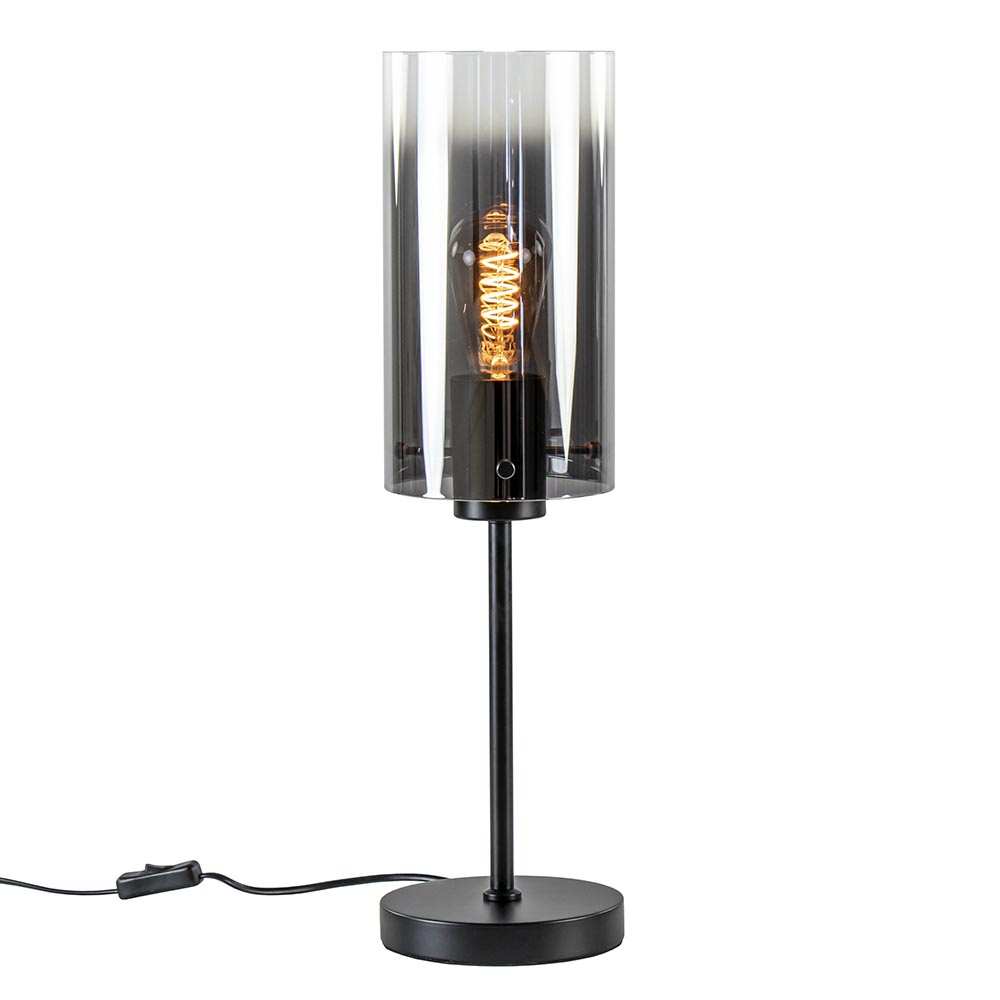 Homepagina / Lampen / Tafellampen / Tafellamp zwart met cilinder kap smoke gradiënt