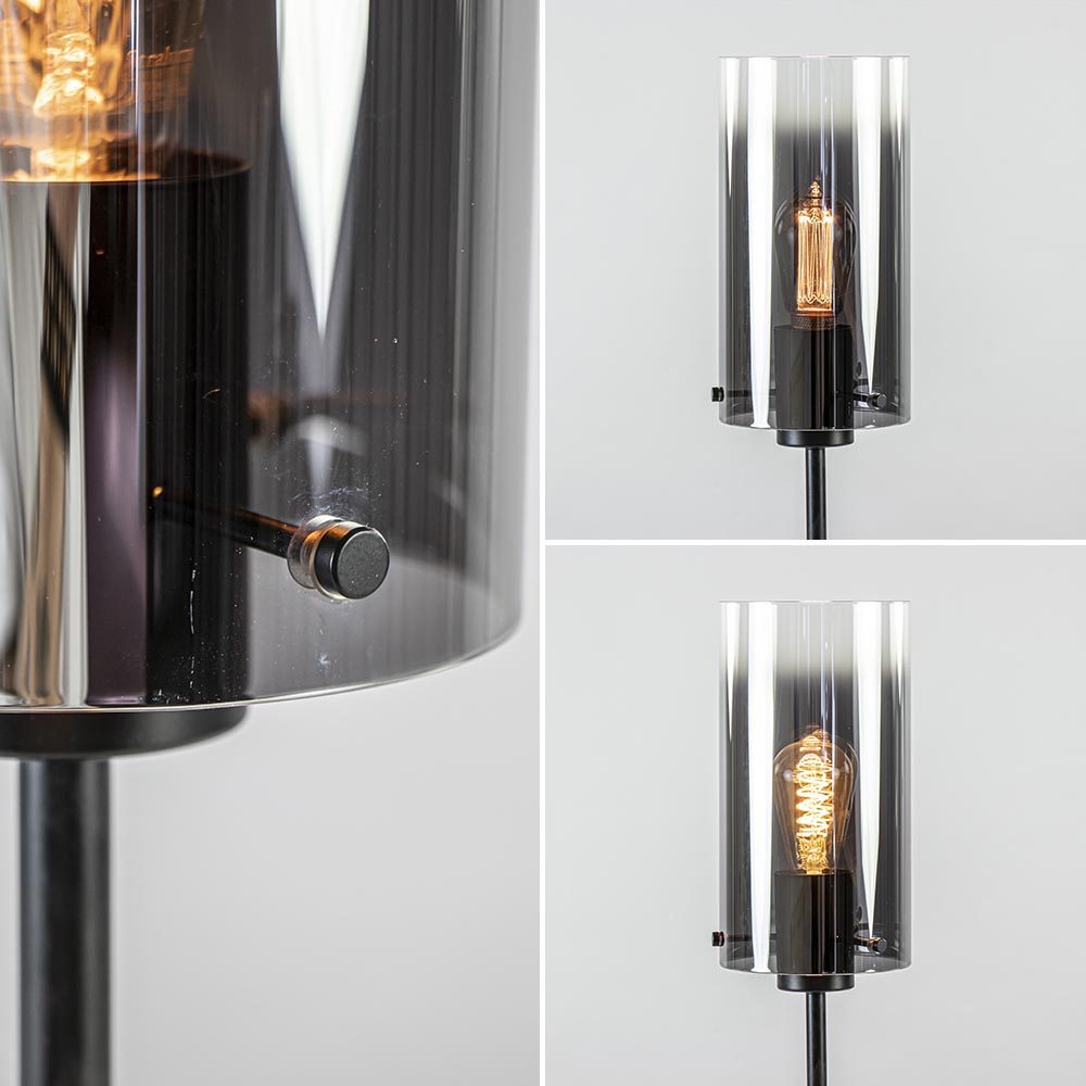 Details: – Hoogte: 58 CM – Kap: Ø 15 x 28 CM – Voet: Ø 16 x 37 CM – Snoer: 170 CM – Metaal, mat zwart – Smoke glas – Exclusief lichtbron (E27) – Dimbaar (exclusief)