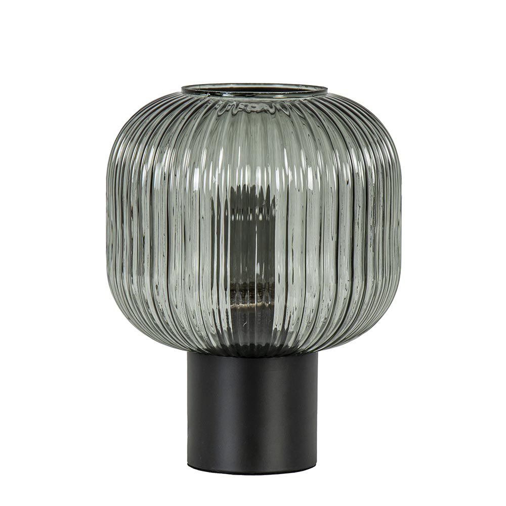 Homepagina / Lampen / Tafellampen / Tafellamp zwart met ronde smoke glazen kap
