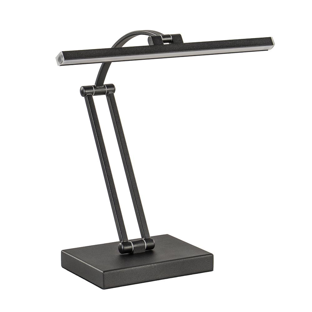 – hoogte: 50 cm – voet: 18x13x2,5 cm – kap: 34×1,5×2 cm – verstelbaar – metaal, mat zwart – inclusief LED – 2700 Kelvin – 450 lumen – dimbaar – zwart snoer: 185 cm