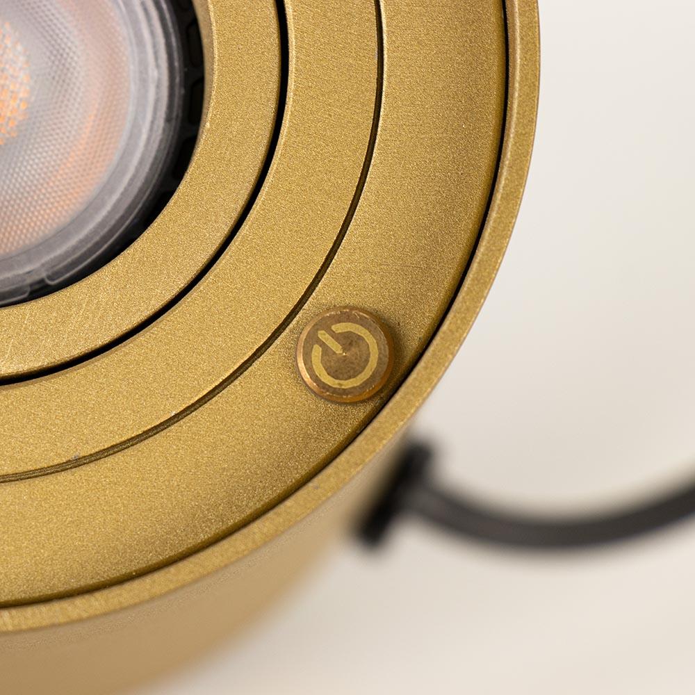 Details: – Afmetingen: Ø9,6 x12,5 cm (h) – Materiaal: Metaal – Kleur: Mat Goud – Fitting: GU10, 1x 5W / 230V – 3 -standen dimbaar (incl.) – Kelvin: extra warm wit licht (2600K) – Lumen: 320 – Verstelbaar: Verticaal kantelen – Snoer: 150 cm – Gewicht 660g