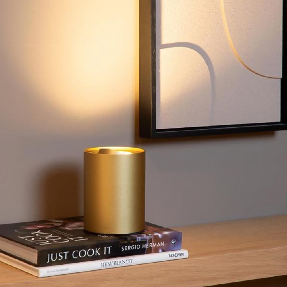 Deze tafellamp brengt de ontwerplijnen van een elegante verzonken inbouwspot bij jou op de tafel. De lichtbron zit compact ingekapseld in een metalen cilinder. Door het strakke design biedt de lamp de ideale tafelverlichting voor strakke en minimalistische interieurs. De meegeleverde ledlamp is in 3 standen dimbaar.