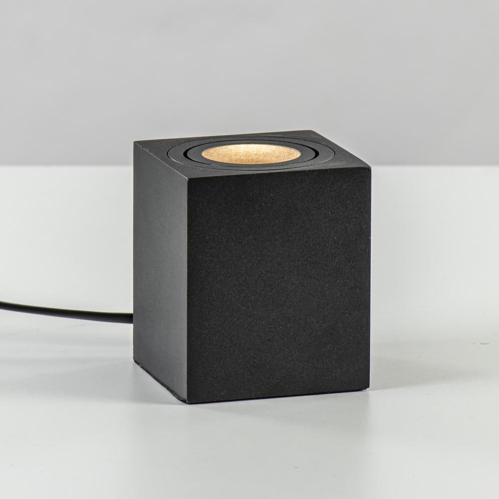 Een spot hoeft niet alleen aan het plafond handig te zijn. Ook deze kleine tafellamp is een ideale toevoeging aan het interieur. Perfect om een kast of een donkere hoek uit te lichten. Zet de tafellamp daar waar u hem nodig heeft. De GU10 spot is te draaien en te kantelen zodat u de lichtrichting ook kunt bepalen. De kleine vierkante tafellamp is gemaakt van metaal en uitgevoerd in het zwart. Het snoer heeft een lengte van 195 cm en is op 55 cm voorzien van een knipschakelaar. De GU10 tafellamp spot wordt geleverd zonder lichtbron.