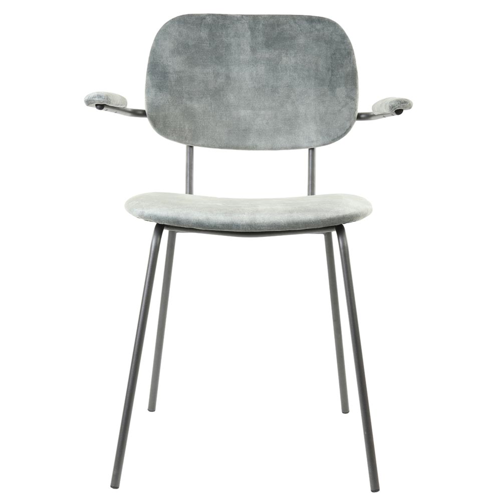 – h82 x b58 x d58 cm – zithoogte: 48 cm – zitbreedte: 46 cm – zitdiepte: 42 cm – hoogte armleuning: 67 cm – stof: velvet grijs – metalen pootjes, donker grijs