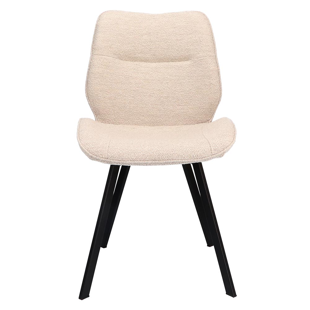 Deze trendy eetkamerstoel is een leuke en comfortabele toevoeging aan de eetkamer. De stoel heeft een stoffen zitting en rugleuning die zijn uitgevoerd in het gemêleerd naturel (beige). De kuip wordt ondersteund door smalle zwart metalen poten. De stoel is mooi te combineren met diverse stijlen eettafels en leuk om te variëren in diverse kleuren.