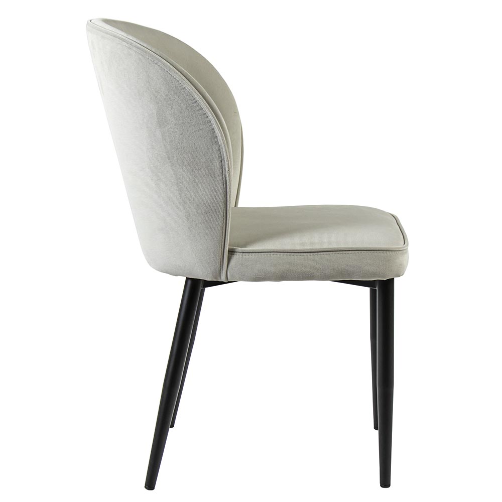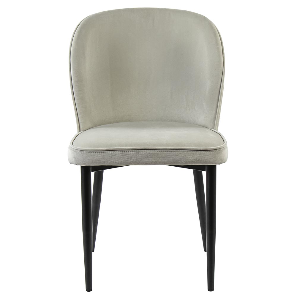 Deze trendy wit velourse eetkamerstoel frist het interieur helemaal op. De stoel heeft een comfortabele zit met een wat hogere rugleuning voor extra steun. De zitting en leuning zijn volledig van stof en uitgevoerd in het gebroken wit. De slanke poten zijn gemaakt van metaal en voorzien van een mat zwarte finish.