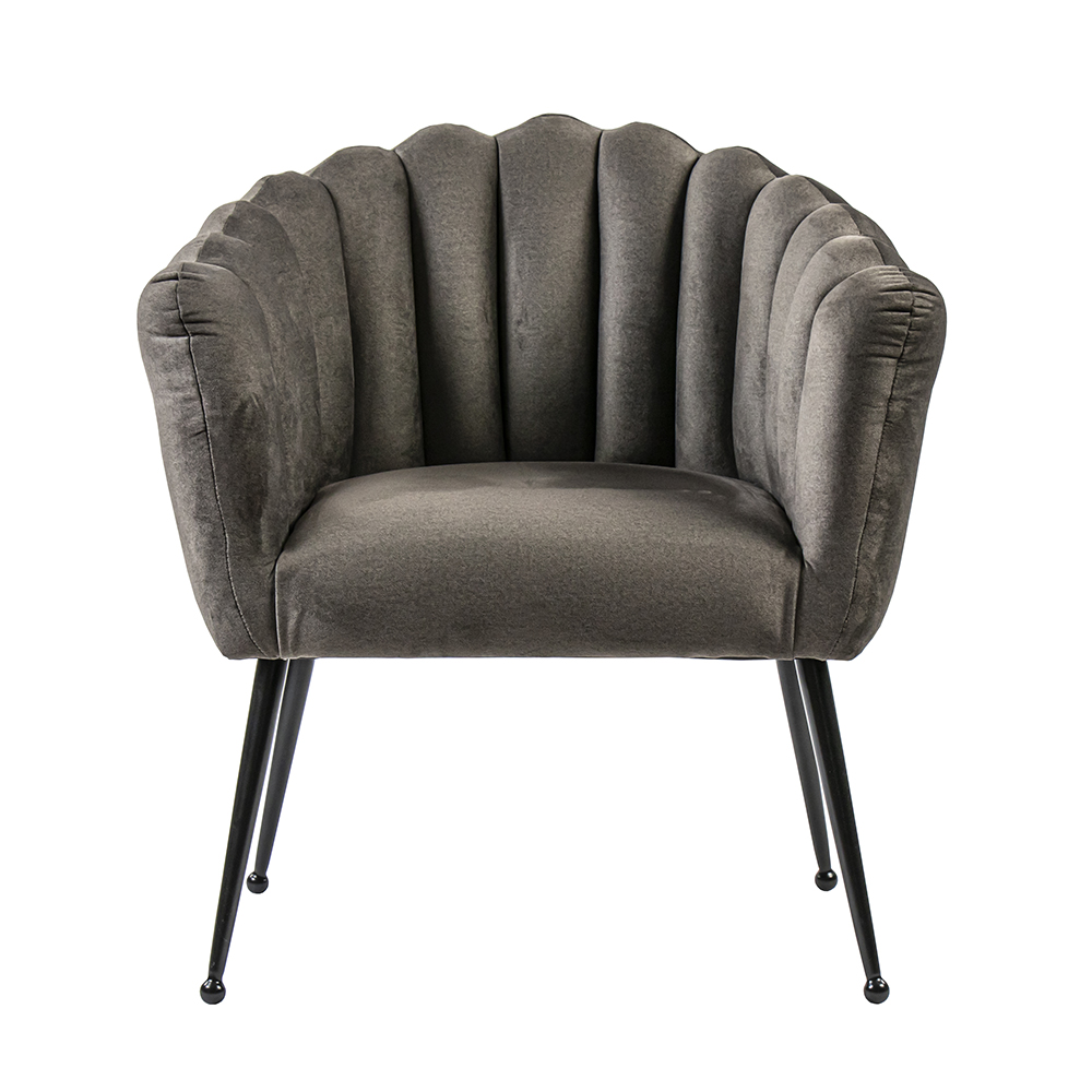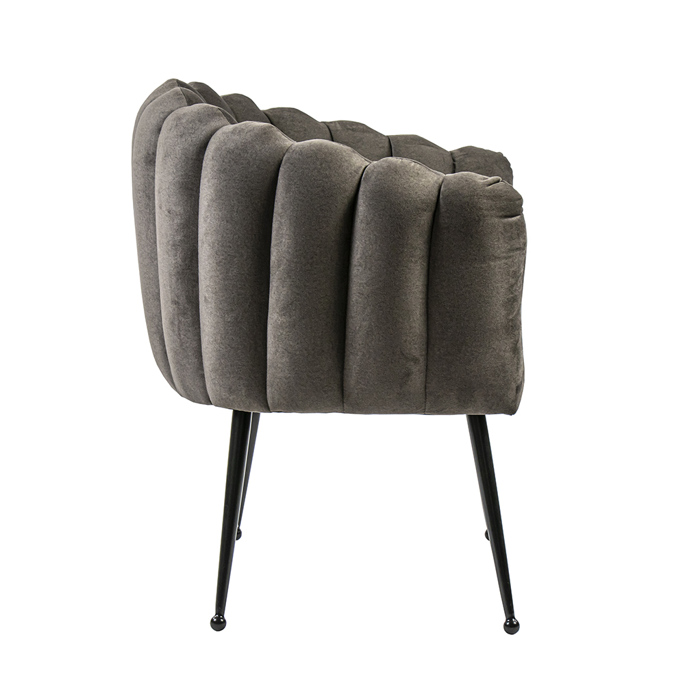 Een trendy fauteuil met een doorgestikte leuning. De stoffen zitting voelt zacht en comfortabel aan en de rugleuning die doorloopt in de armleuning geeft een fijn support. De stoffen zitting is uitgevoerd in het bruin en gecombineerd met smalle zwart metalen pootjes.