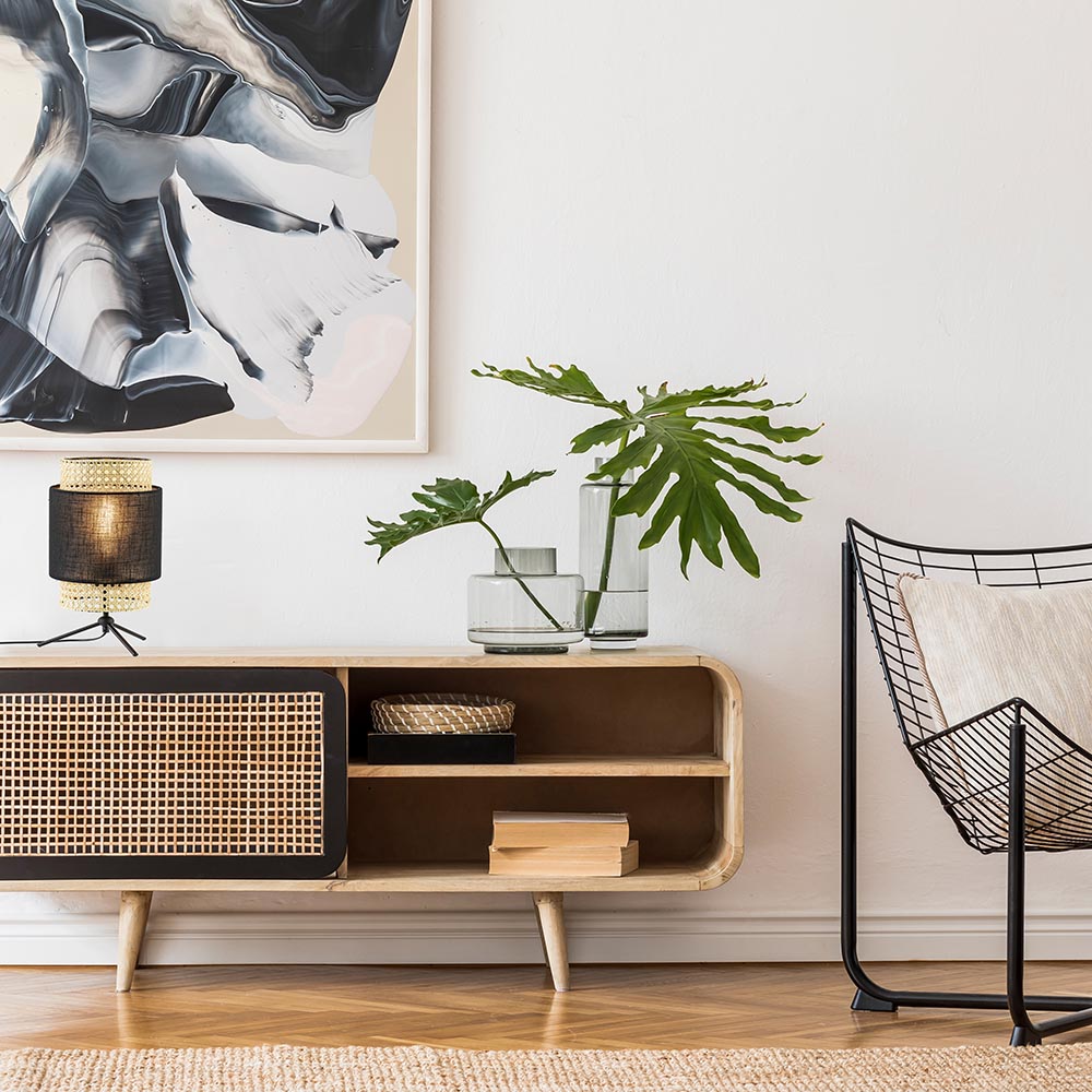 Een leuke sfeervolle toevoeging op een kast, bijzettafel of nachtkastje. Webbing is weer helemaal trendy in het interieur en dat is in deze tafellamp mooi verwerkt. De driepoot heeft een mat zwarte kunststof kap waar zowel boven als onder een deel webbing is verwerkt. Dit geeft de tafellamp die retro/vintage look, maar ook helemaal trendy. De driepoot tafellamp is voorzien van een zwart snoer met een lengte van 180 cm. De knipschakelaar bevindt zich op 65 cm in het snoer. Deze webbing tafellamp wordt geleverd zonder lichtbron.