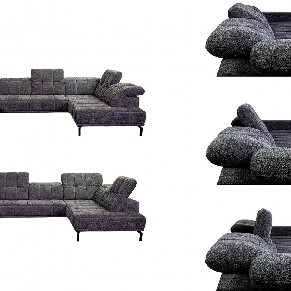 Specificaties: • Model: Trifolium • Artikelnummer: MP-IN 20128 • Afmetingen: Totale lengte 360 cm - Lengte open eiland: 210 cm - Lengte sofa: 190 cm - Lengte tussengedeelte: 150 cm • Zithoogte: 45 cm • Bekleding: Kama Black (groep 3) / Famosa Grey (groep D) • Verstelbare rugleuningen: individueel kantelbaar • Leverbaar in meerdere kleuren, stoffen en opstellingen