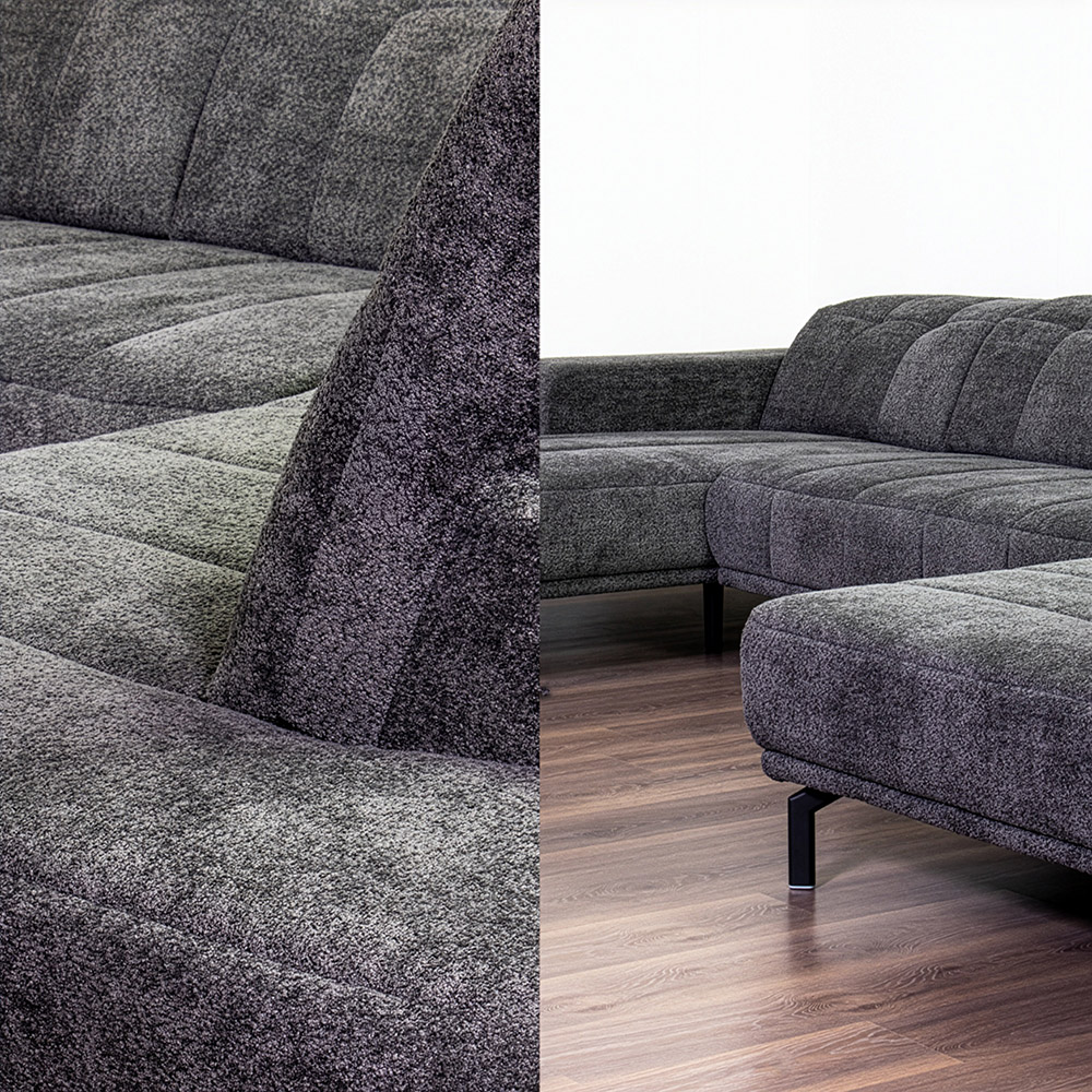 Homepagina / Wonen / Banken / Veelzijdige hoekbank Trifolium in de kleur Kama Black/Famosa grey
