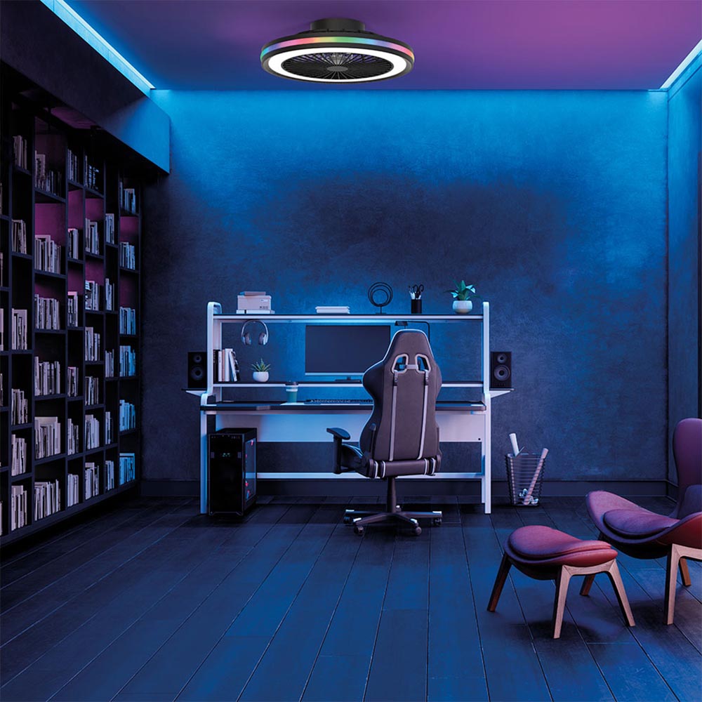 Homepagina / Lampen / Plafondlampen / Ventilator Gamer Ø46 cm | remote cct/rgb – Zwart