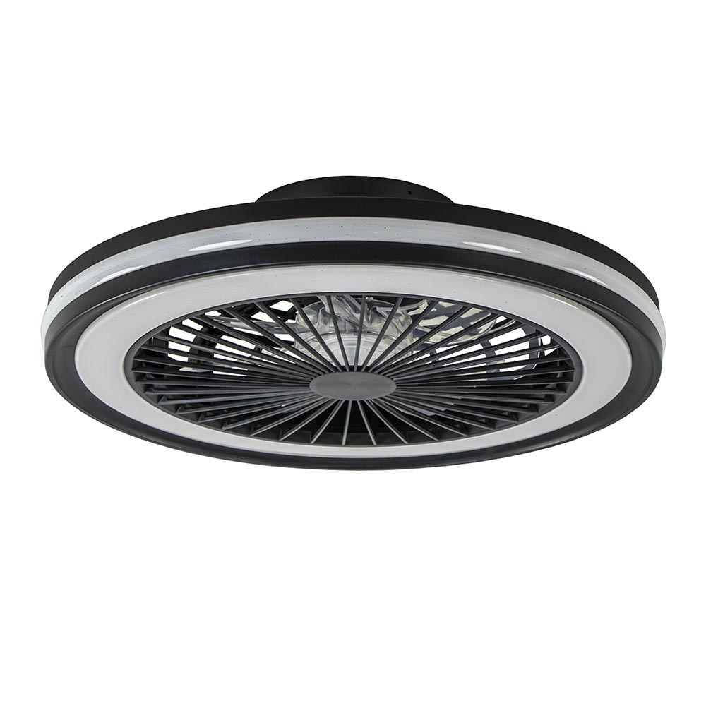 – Afmetingen: Ø55,6×14,2 cm – Plafondbevestiging: Ø16,5 x 4,5 cm – Kunststof, zwart – Geïntegreerd LED – 3000-6500 Kelvin – 6700 Lumen – 60 Watt – Inclusief afstandsbediening – minimaal 44 en maximaal 56 decibel – zomer + winter stand – geschikte ruimte: 13-20 m2
