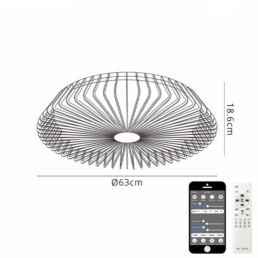 – afm: Ø63×18,6 cm – bevestiging: Ø27,5×5 cm – kap: Ø63×13 cm – ventilator: Ø36 cm – bedienbaar met afstandsbediening en app – geïntegreerd LED – kleur: zwart – Kelvin: 2700 – 5000 – lumen: 4900 – gewicht: ongeveer 7 kg – dimbaar – inclusief afstandsbediening – mobiel bedienbaar via bluetooth/app – levensduur: 25.000 uur – minimaal 41,8 en maximaal 51,8 decibel – 102m3 / min – zomer + winter stand – IP20 goedgekeurd – geschikte ruimte: 13-20 m2 – beschikt over voice control, werkt met Google assistant en Amazon Alexa – energieverbruik LED verlichting 70 watt – energieverbruik ventilator 35 watt – niet geschikt met een dimmer op de muur