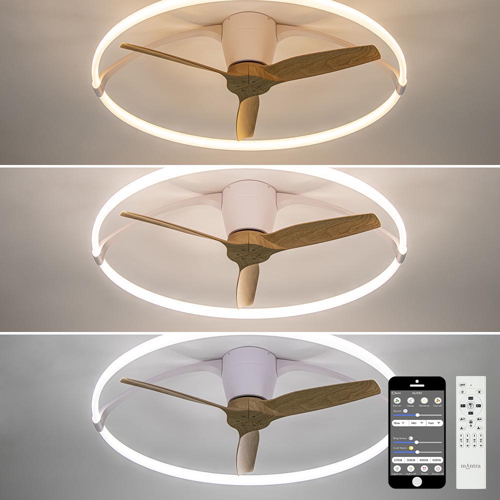 Design meets function. Deze moderne plafondventilator is zowel strak van design als zeer functioneel door zijn vele opties. De plafondlamp en ventilator in één zijn gemakkelijk te bedienen dmv de meegeleverde afstandsbediening. Daarnaast zijn ze ook beide te bedienen dmv een app op de smartphone. Deze wordt met Bluetooth gemakkelijk gelinkt aan de plafondventilator. Bedien zo vanaf uw bank of bed de LED verlichting of de ventilator apart van elkaar. Schakel makkelijk tussen de diverse standen of stel het helemaal naar eigen wens in. De geïntegreerde LED verlichting is dimbaar en kan worden ingesteld qua temperatuur, variërend van warm wit tot koel wit. De ventilator heeft een zomer en winter stand zodat deze het hele jaar door kan worden gebruikt. Het moderne design geeft de plafondventilator een open structuur waardoor er een goede luchtverplaatsing kan plaats vinden en de plafondlamp ook een eyecatcher voor de ruimte is.