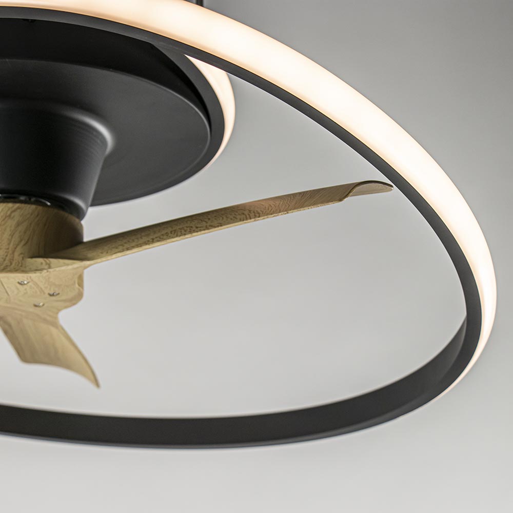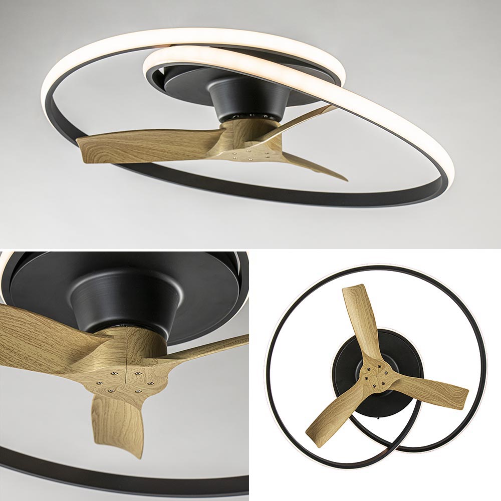 – Omvang: 78 x 73 x 22 cm – Plafond bevestiging: Ø32,5 cm – Geïntegreerd LED – 2700 – 5000 kelvin – 6600 Lumen – 60 watt – Hout – 4.8 Kilo – 30 watt motor – Metaal, mat zwart – Inclusief dimmer – Inclusief afstandsbediening