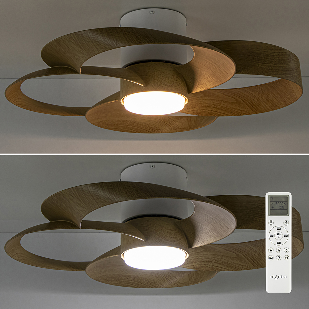 – afm: Ø65×21 cm – bevestiging: Ø15×12 cm – geïntegreerd LED – kleur: wit + houtlook – Kelvin: 2700 – 5000 – lumen: 3200 – dimbaar – inclusief afstandsbediening – minimaal 33 en maximaal 48 decibel – zomer + winter stand – IP20 goedgekeurd – geschikte ruimte: <13 m2