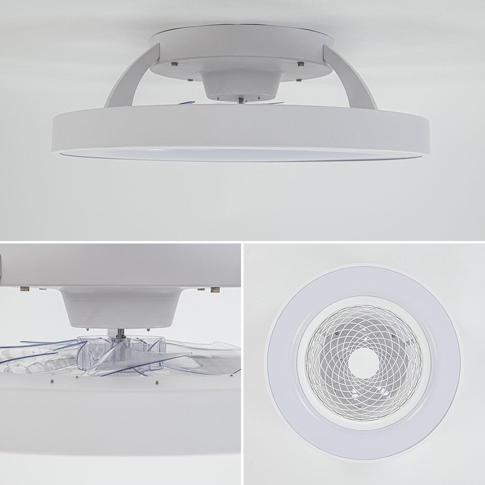 Een moderne plafondventilator met een strak design. Deze ronde ventilator bestaat uit twee delen, de buitenste ring is voorzien van geïntegreerd LED en de binnenste ring behuisd de ventilator. Het mooie is ook dat de ventilator en de lamp zijn te bedienen via de meegeleverde afstandsbediening, maar ook gemakkelijk met uw smartphone. Middels een app en bluetooth linkt u de ventilator gemakkelijk met uw smartphone en stelt u snel de gewenste snelheid van de ventilator in of dimt u de verlichting. De LED verlichting is in te stellen qua kleur en intensiteit, ideaal voor in de woonkamer of slaapkamer. De moderne plafondventilator met lamp heeft een zomer en een winter stand zodat u deze het hele jaar door kunt gebruiken.