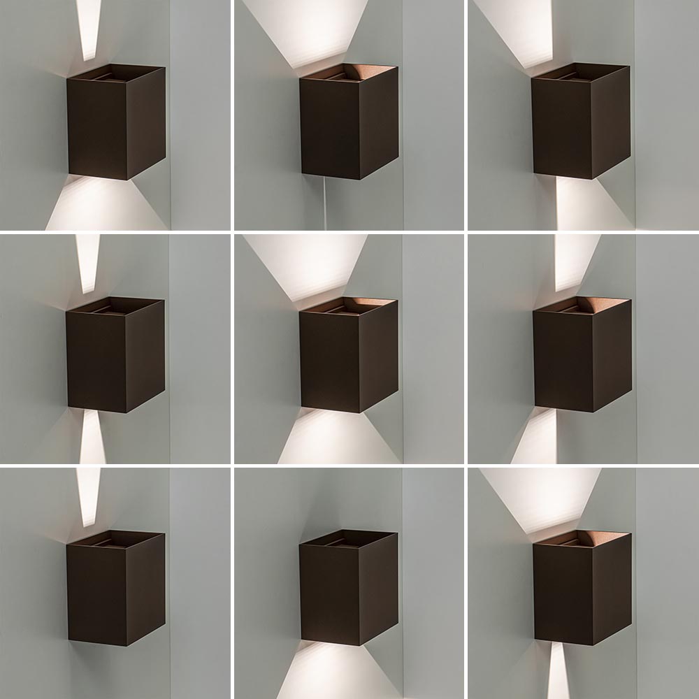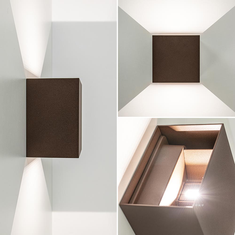– Afmetingen: 15 x 15 x 10 cm – Wandbevestiging: 14,5 x 12,5 cm – Aluminium, bruin – Geïntegreerd LED – 4000 Kelvin – 1830 Lumen – 20 Watt – IP54