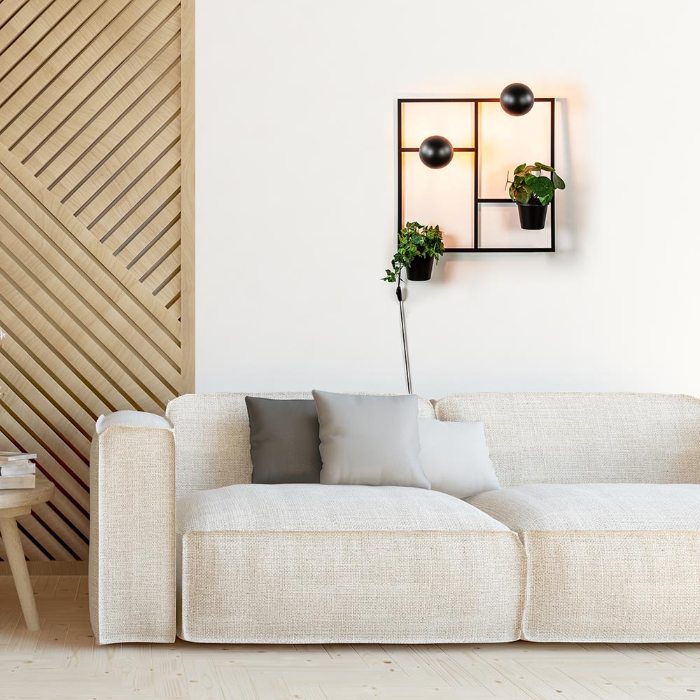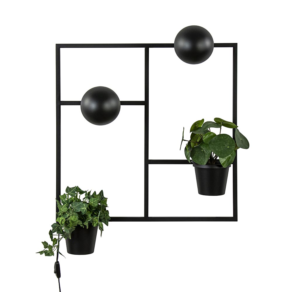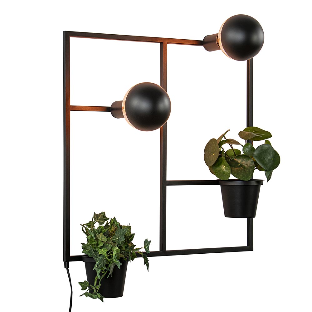 Homepagina / Lampen / Wandlampen / Vierkant wandrek met plantenpotten en E27 fittingen