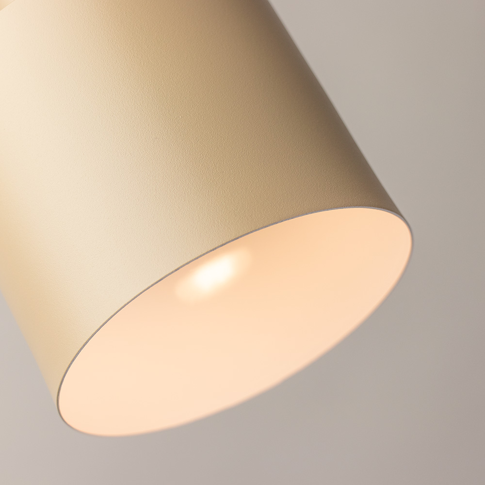Deze moderne vloerlamp heeft een strakke uitstraling die mooi past binnen de huidige woontrends. De armatuur is heeft een mooie zand kleur. De kapjes zijn voorzien van een witte coating aan de binnenkant en zijn helemaal naar wens te verstellen door de kapjes te draaien ot te kantelen. Ook zijn de lampjes afzonderlijk van elkaar aan/uit te doen door middel van de schakelknop op de achterkant van de kap. Ideaal voor in de woonkamer in een donkere hoek of naast de bank. De stijlvolle vloerlamp heeft een zwarte snoer dat is voorzien van een schakelaar.