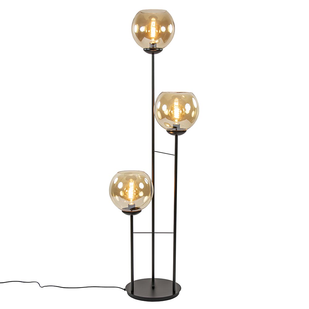 Homepagina / Lampen / Nachtkastlampen / Vloerlamp 3L zwart + amber glas 25cm