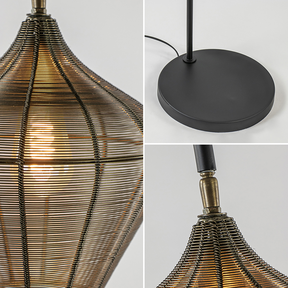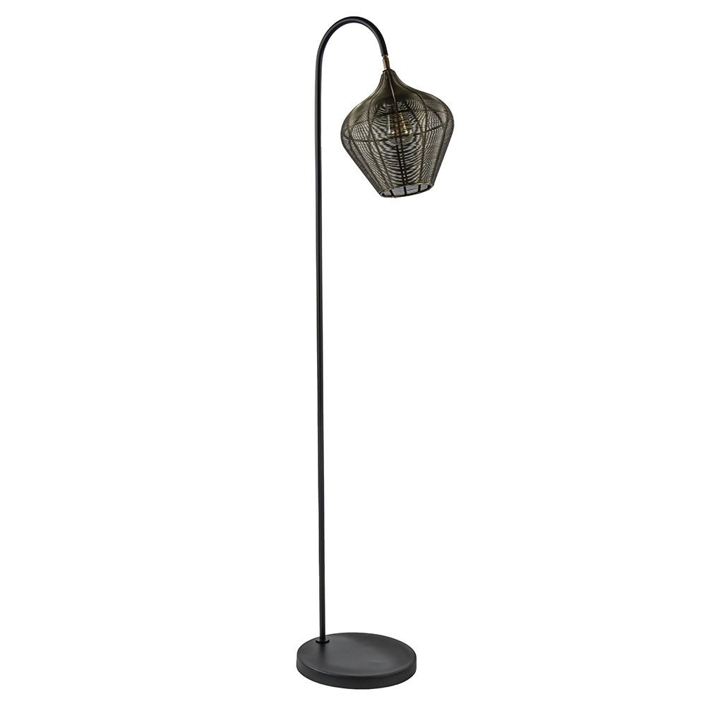 Alvaro is een sfeervolle vloerlamp die perfect past in een Scandinavisch of landelijk interieur. De vloerlamp is volledig van metaal en voorzien van een antiek bronzen en mat zwarte finish. De draadkap heeft een speelse vorm en is te kantelen. Alvaro is voorzien van een ronde voet met een zwart snoer van 195 cm. De staande lamp wordt gemakkelijk aan/uit geschakeld door de voetschakelaar die zich op 70 cm van de lamp bevindt.