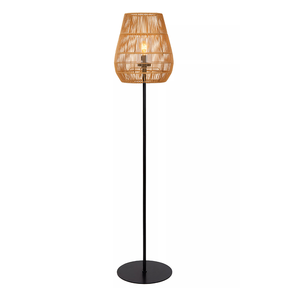 – afm: Ø35×154 cm – voet: Ø30×0,5 cm – kap: Ø35×39 cm – metaal, mat zwart – rotan, naturel – zwart snoer: 150 cm – exclusief lichtbron (E27)