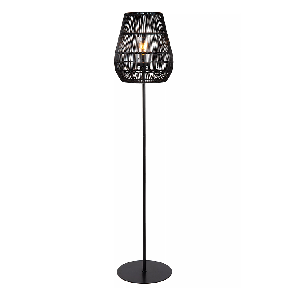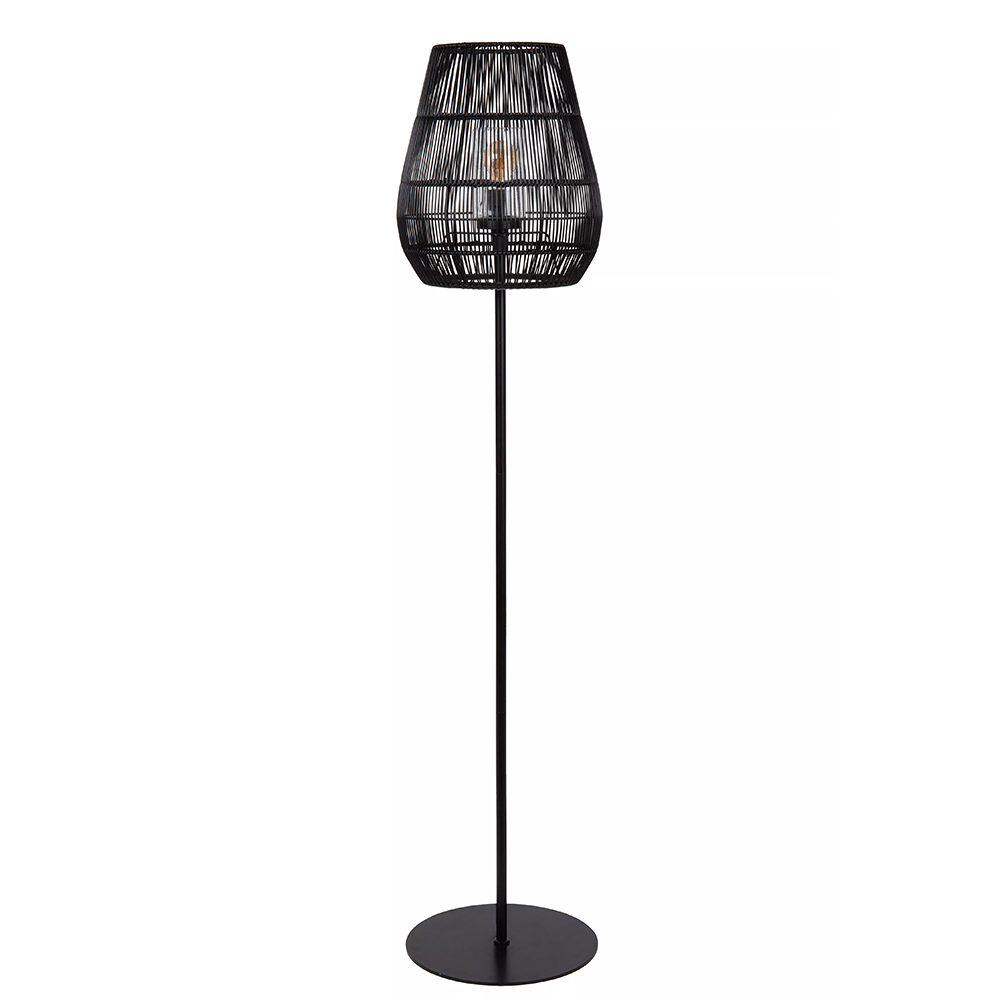 – afm: Ø35×154 cm – voet: Ø30×0,5 cm – kap: Ø35×39 cm – metaal, mat zwart – rotan, zwart – zwart snoer: 150 cm – exclusief lichtbron (E27)